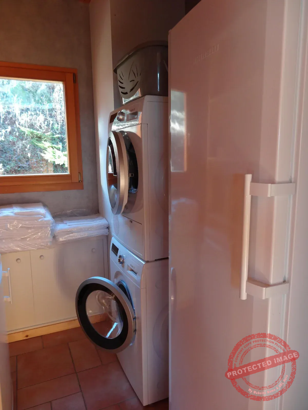 En cuisine : Lave vaisselle, four micro ondes, four, frigo, feux induction, machine à café, appareil à raclette, toaster, vaisselles. Salle de bains Aspirateur. Lave linge et sèche linge. Chaise haute enfant et lit bébé.